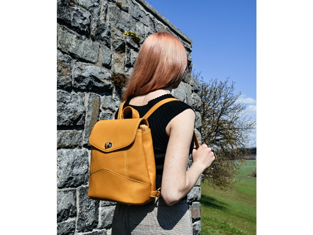 Odepínací nastavitelné popruhy umožňují nosit batůžek na zádech i na rameni, jako kabelku. Hlavní zapínání je díky otočnému zámku rychlé a pohodlné.