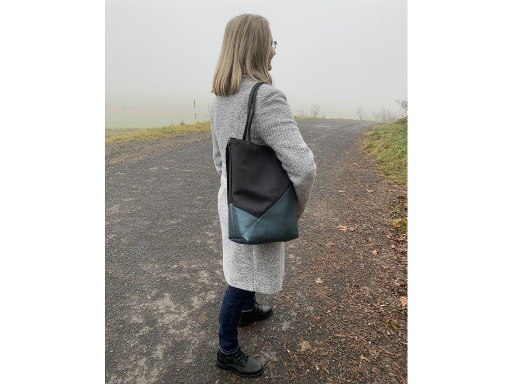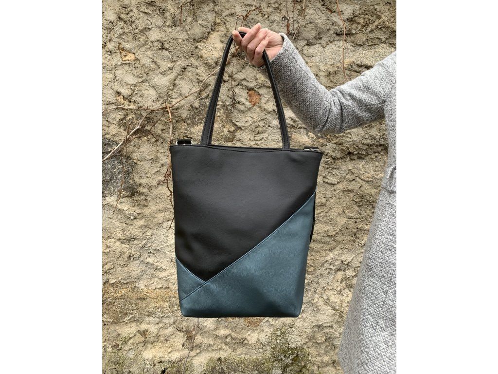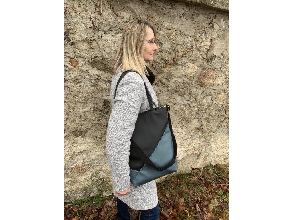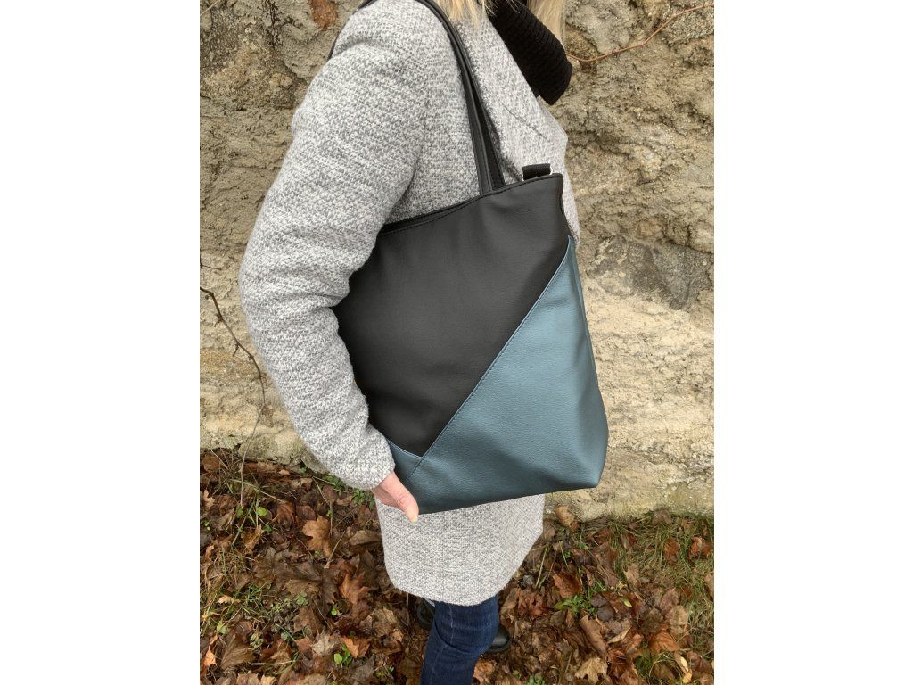 Velká kabelka přes rameno s aplikací safírové nebo smaragdové koženky, dle Vašeho výběru.