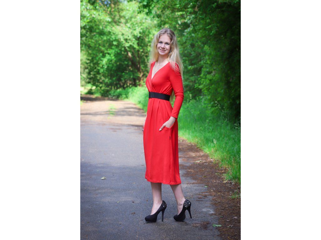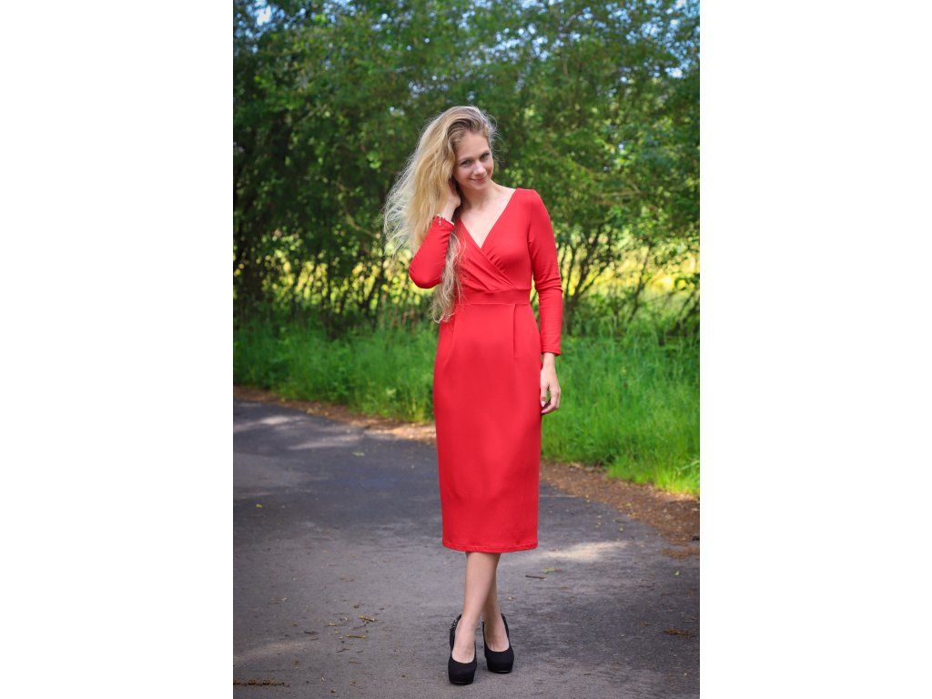 Šaty Adéla s křížením v divoké červené nebo jemné starorůžové.