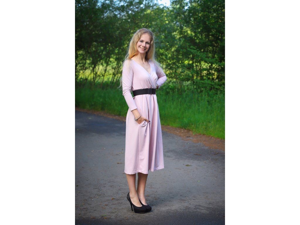 Dlouhé šaty s křížením na prsou z modalového úpletu užijete k mnoha příležitostem. Určitě oceníte příjemný materiál, krásnou barvu a hluboké kapsy... Zvolenou barvu stačí napsat do poznámky.