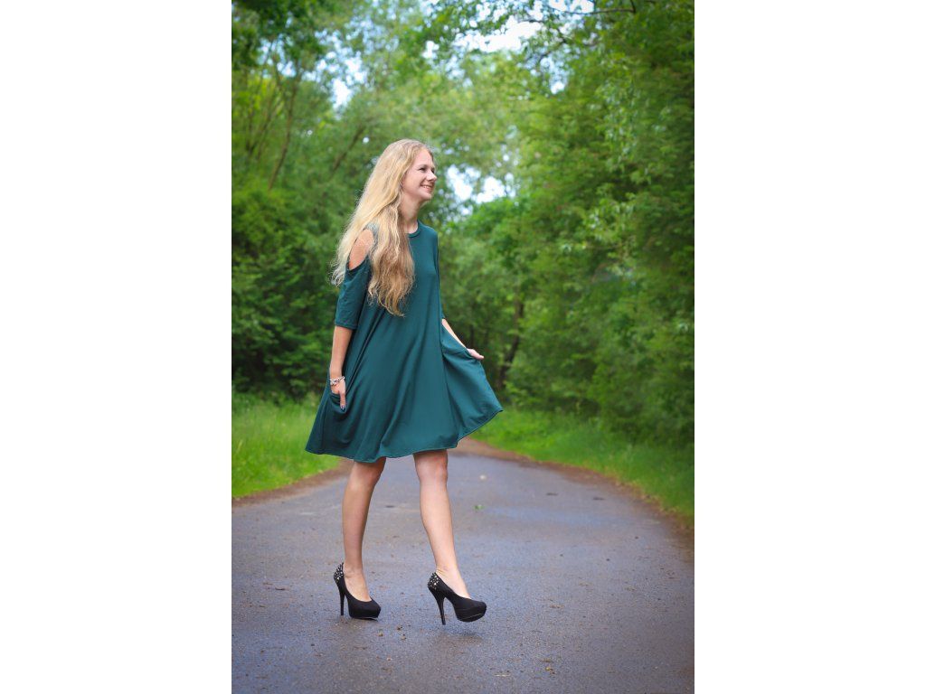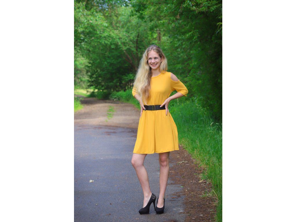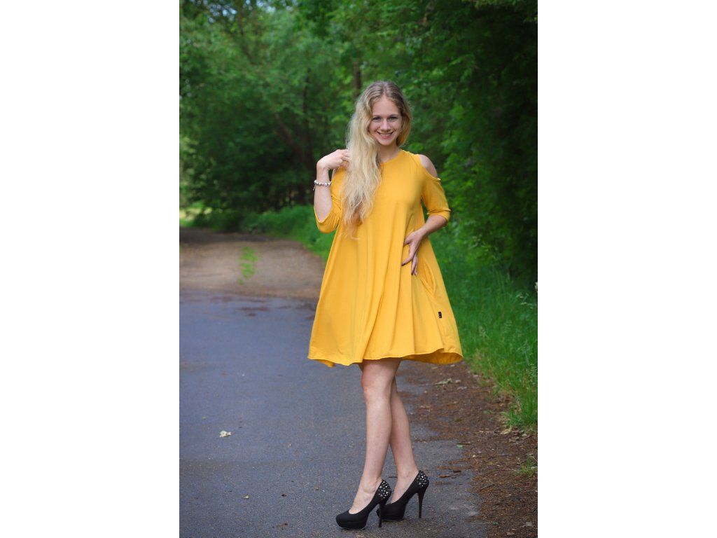 Šaty volného střihu, jen si vyberte správnou barvu: černá, petrolejová, žlutá a fuchsiová. Zvolenou barvu stačí připsat do poznámky.