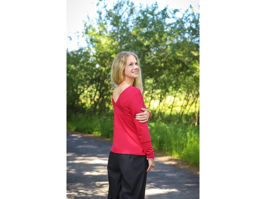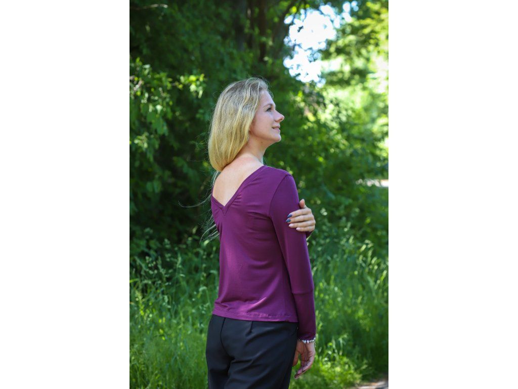 Triko Vanesa je ušito z příjemného materiálu s výstřihem do V vpředu i na zádech, které krásně sedí na těle. Stačí si vybrat tu Vaši barvu: černá, fuchsiová, hořčicová, lila, žlutá. Barvu uveďte do poznámky.